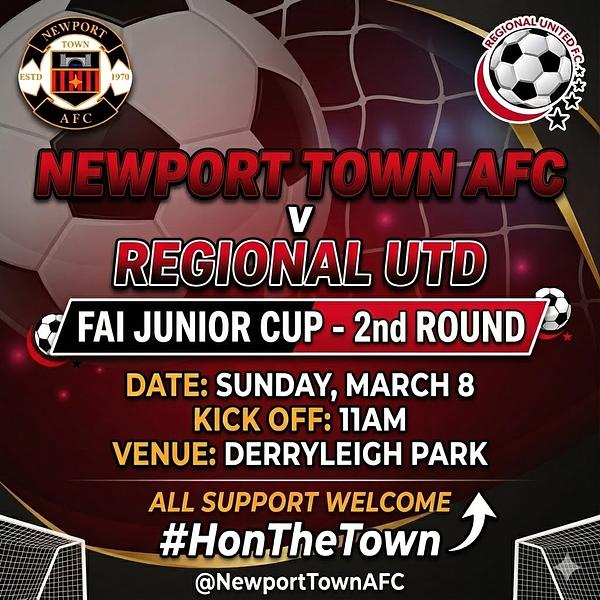 FAI Junior Cup gets underway this weekend when Newport welcome Regional Utd to Derryleigh Park on Sunday morning. The game kicks off at 11am and all support is welcome to get behind the lads when they take on the Premier League side. #honthetown